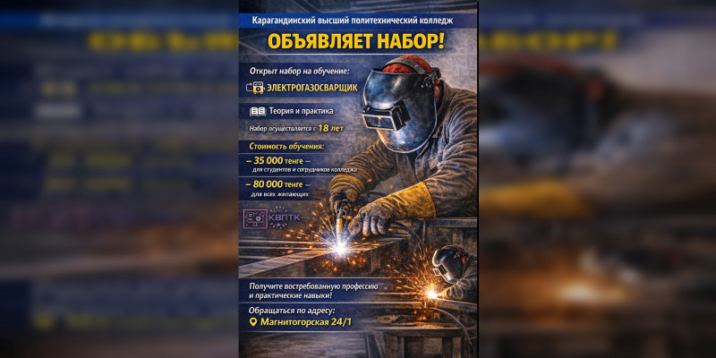 Карагандинский высший политехнический колледж объявляет набор на краткосрочные курсы по востребованным рабочим профессиям: